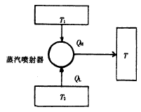 蒸汽喷射压缩式热泵是利用高温位热量QH(温度T1)为代价,通过蒸汽喷射器,将低温热源QL的温度T2提高到用户所需要的热位Q(温度T),其工作原理如图2所示。
