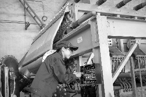图为该公司员工在仔细检测新设备运行情况。 (特约记者 尤树民 摄)