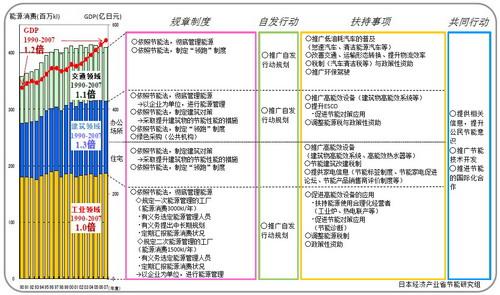 日本政府认为“节能”除了能够保障能源安全、应对全球气候问题之外,还是日本在经济发展缓步不前、原油价格持续高涨、且缺乏自然能源的情况下,保持经济发展的必要行动。