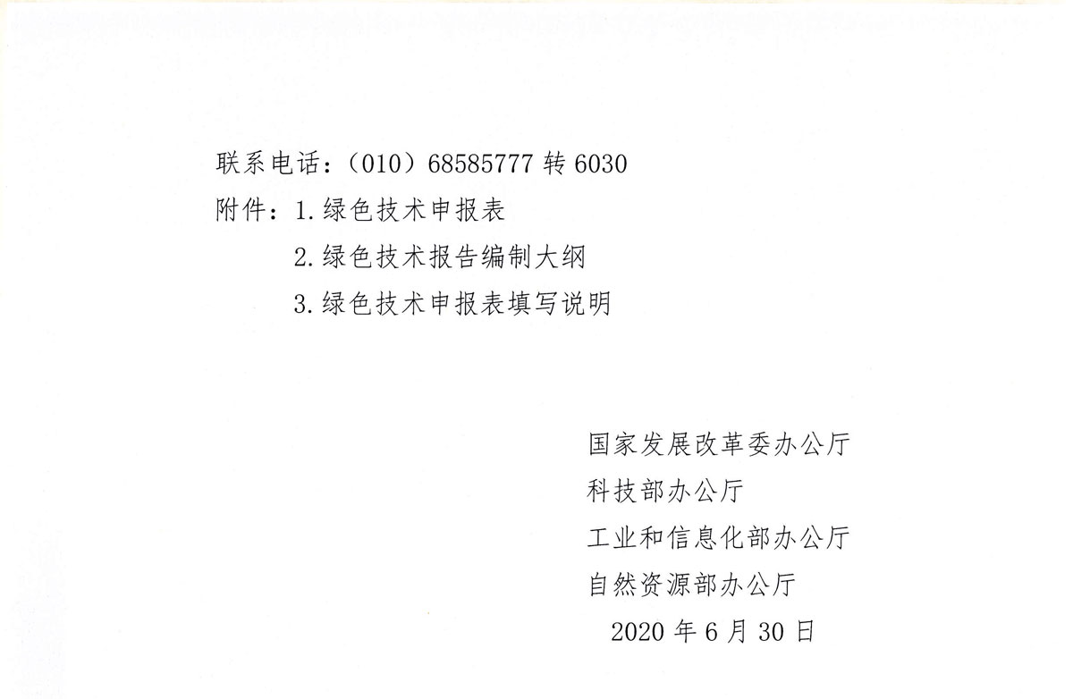 关于转发国家发改委关于纽织推荐绿色技术通知的函