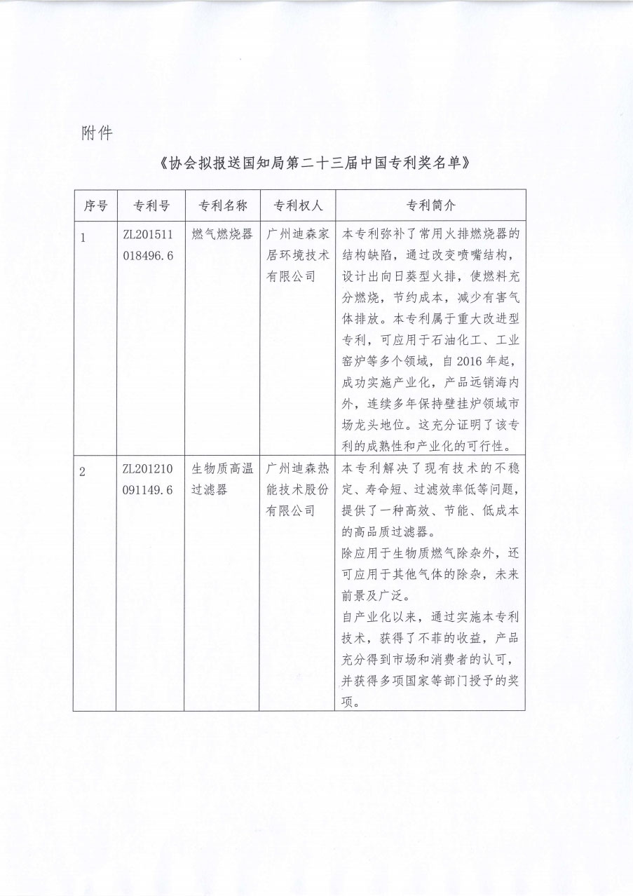 协会拟报送国知局第二十三届中国专利奖名单公示