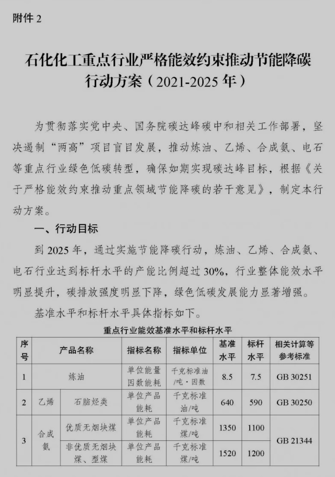 2.石化化工重点行业严格能效约束推动节能降碳行动方案(2021-2025年)
