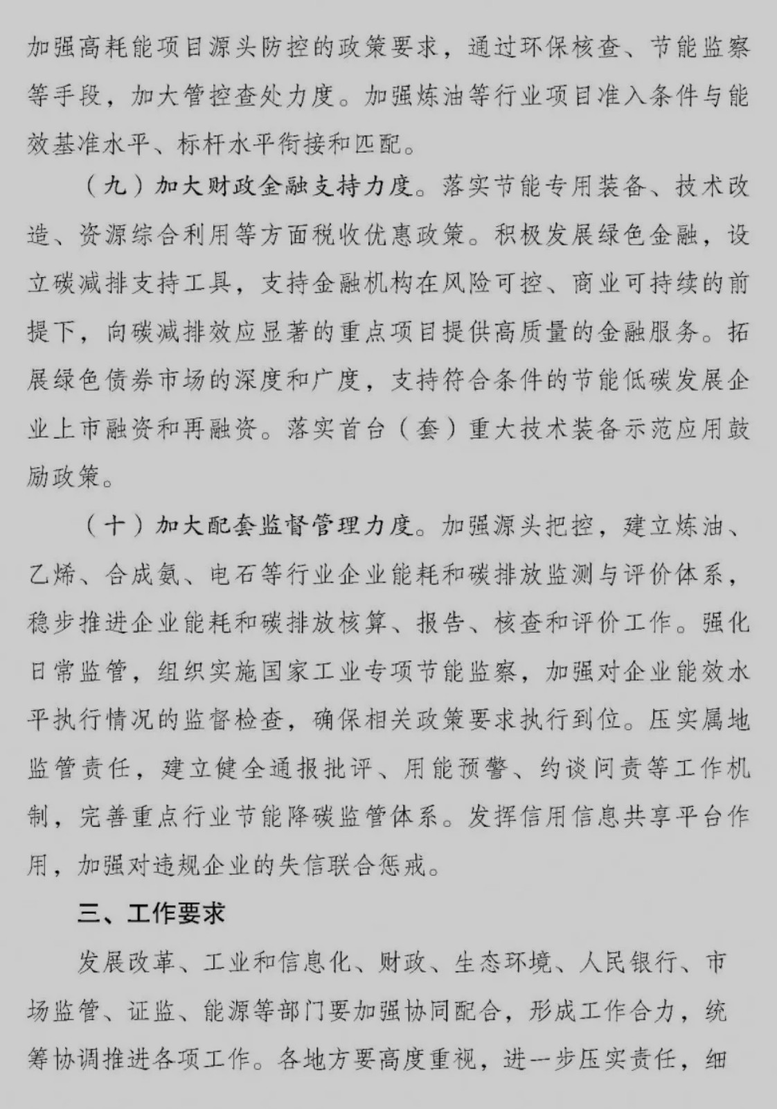 ●坚持综合施策、平稳有序。整合已有政策工具,加强财政、金融、投资、价格等政策与产业、环保政策的协调配合,运用市场化法治化方式,稳妥有序推动重点领域节能降碳。避免“一刀切”管理和“运动式”减碳,确保产业链供应链安全和经济社会平稳运行。