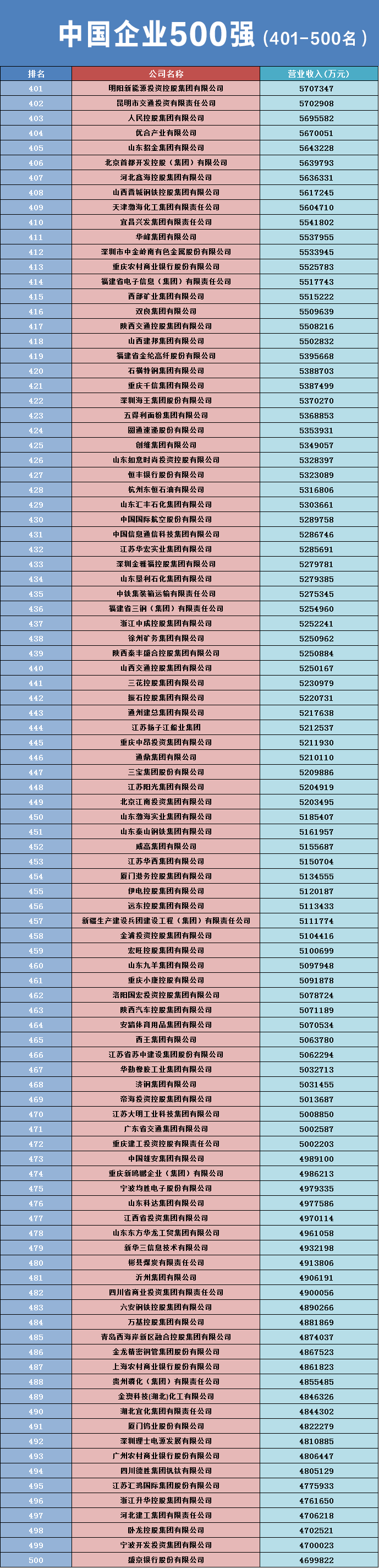 中国企业500强名单(石油和化工企业)