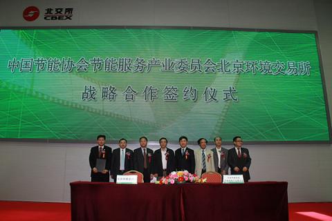 在新闻发布会上,北京环境交易所总经理梅德文与中国节能协会节能服务产业委员会常务副会长谌树忠签署了北京环境交易所与中国节能协会节能服务产业委员会合同能源管理战略合作协议,共同开发、建设中国合同能源管理投融资交易平台,培育节能服务产业。对于本次合作,熊焰董事长表示:“北京环境交易所与中国节能协会节能服务产业委员会的合作,将真正完善合同能源管理投融资交易的市┨逑担在国家政策扶持与鼓励下,真正实现合同能源管理投融资交易市场化。”吴道洪会长也认为:“中国节能协会节能服务产业委员会选择与北京环境交易所合作是中国节能服务产业的一件大事,节能服务产业委员会的企业资源、网络系统与北京环境交易所的交易平台与投融资网络将实┪薹炝唇樱将合同能源管理投融资交易中的所有环节全部联通。”
