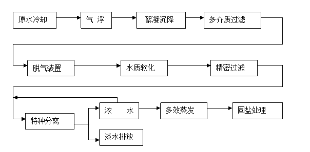 经该装置技术处理后的全盐含量30000mg/L以上的地下高含盐废水,淡水全盐量不超过22mg/L,浓缩盐水全盐量达到170000mg/L以上,而且其它指标均优于农业灌溉水质标准(GB5084-92)、综合污水排放标准(GB8978-1996)的要求。装置连续运行,从原水进入装置成处理排放仅需四小时,而且脱盐率可达99.9%,产水率可达93.8%,处理量可达1000t/d。自动化程度非常高唤鲂1—2人值班维护,大大降低了运行费用。