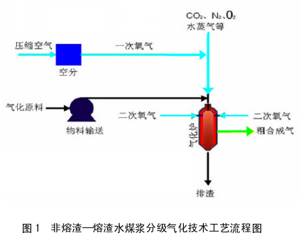 技术名称:非熔渣—熔渣水煤浆分级气化技术
