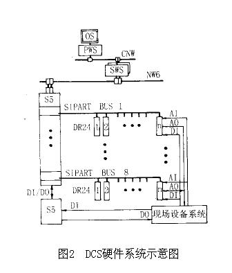 DCS的工作对象共30个,进行煤 混合站及混合加压站的流量和压力、防喘振、入口阀、煤气放散塔以及煤气联网、蒸汽联网等控制,共计1100个信号,相应共引进43台西门子的DR24型多功能单元(带通信口的可编程调节器)。该装置有二种通信口,一为V.28点对点,另一为SIPART总线。SIPART总线最多可并联32个单元,传 操作状态、过程变量和各种参数,通信速率为9600b/s。通信协议为DIN66258A或B。系统由EMS中的COM(S5)子站与DCS通信。可以由控制站下达设定和操作指令,并显示现场回馈的数据和状态。