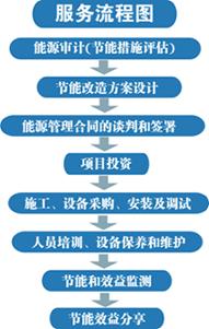 EMC公司提供能源用户能源审计诊断评估、改善方案规划、改善工程设计、工程施工、监理,到资金筹集的财务计划及投资回收保证的等全面性服务;采用适当的方法或程序验证评价节能效益,为能源用户提供节能绩效保证,再以项目自偿方式由节约的能源费用偿还节能改善工程所需的投资费用。