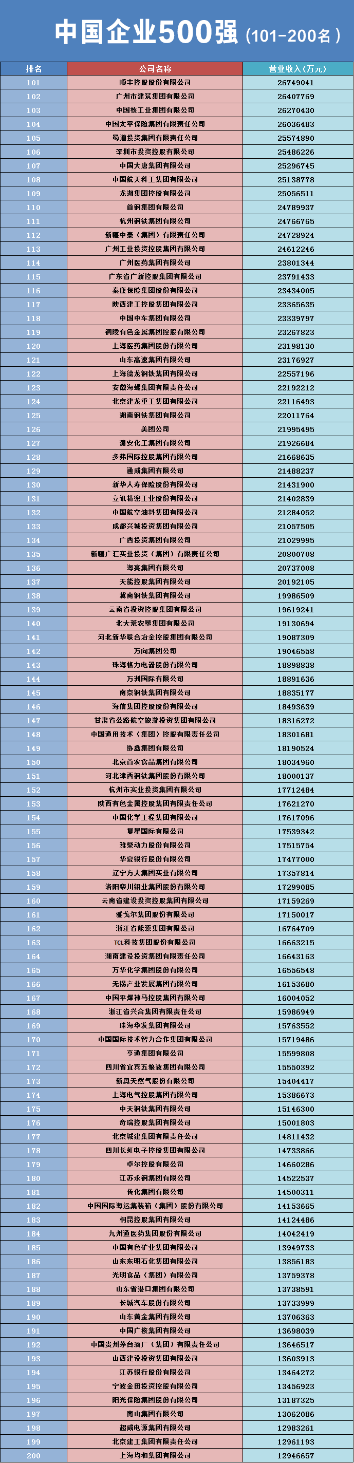 中国企业500强名单(石油和化工企业)
