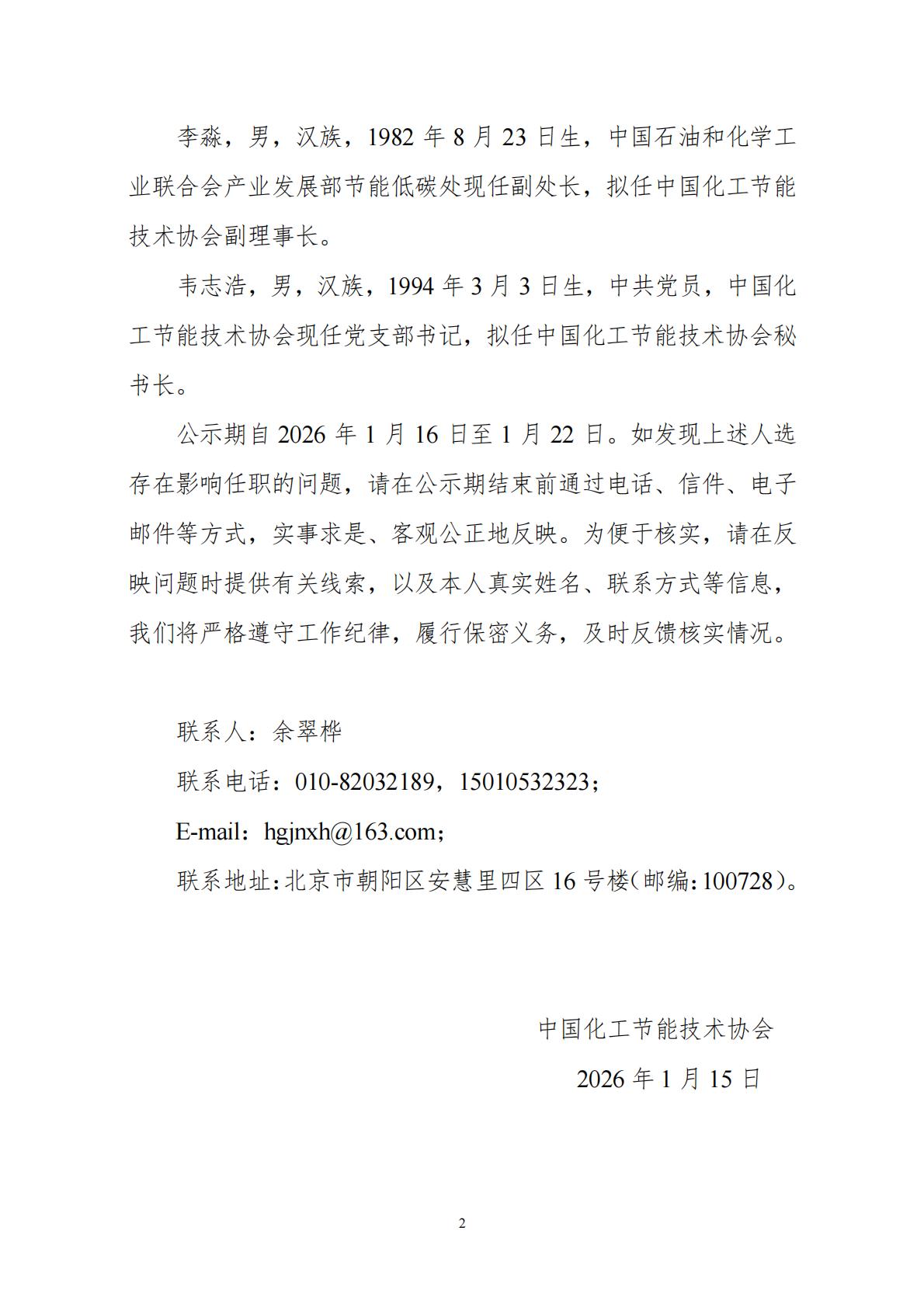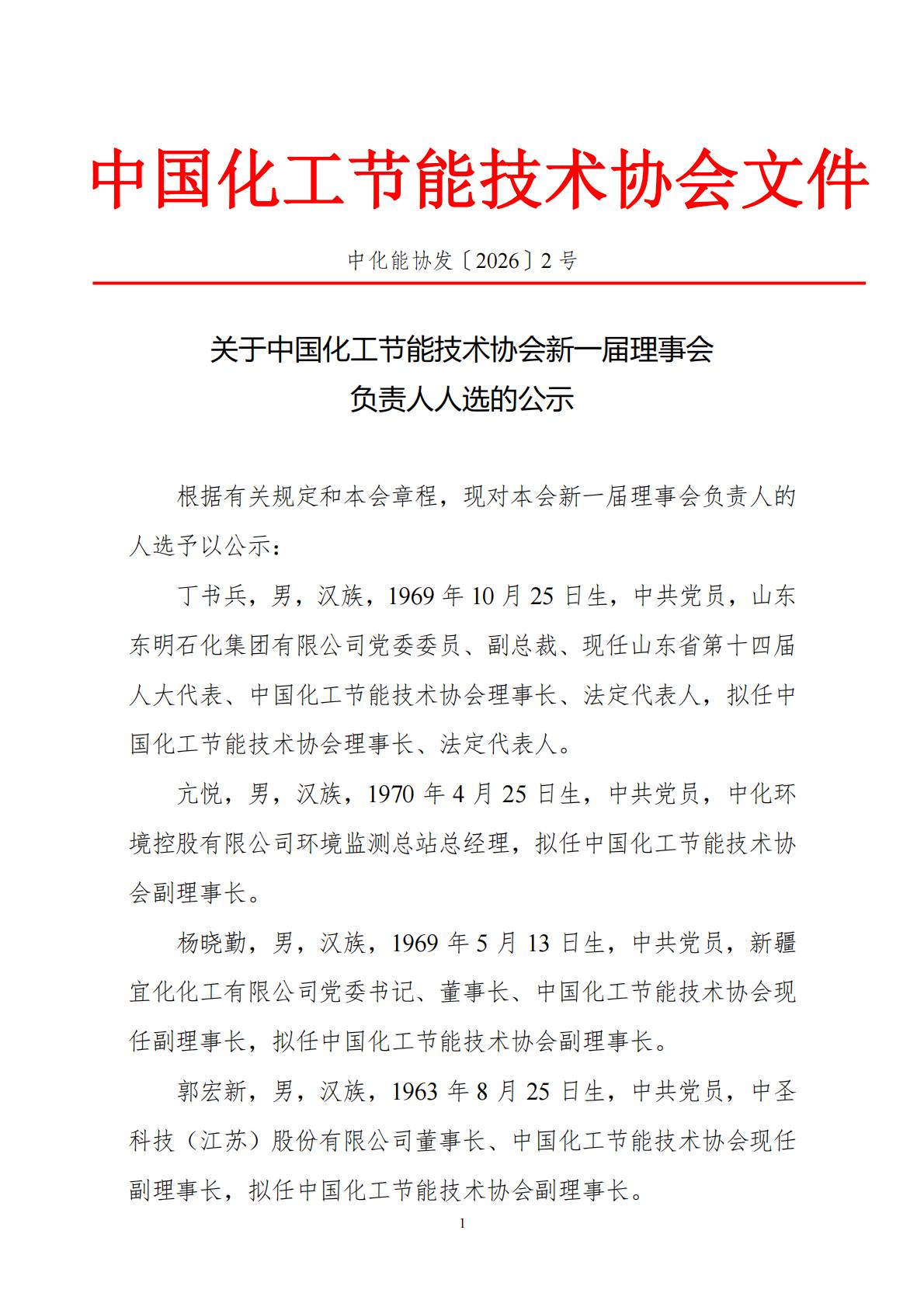 关于协会新一届负责人人选的公示